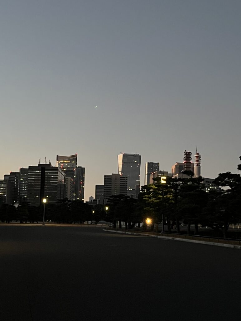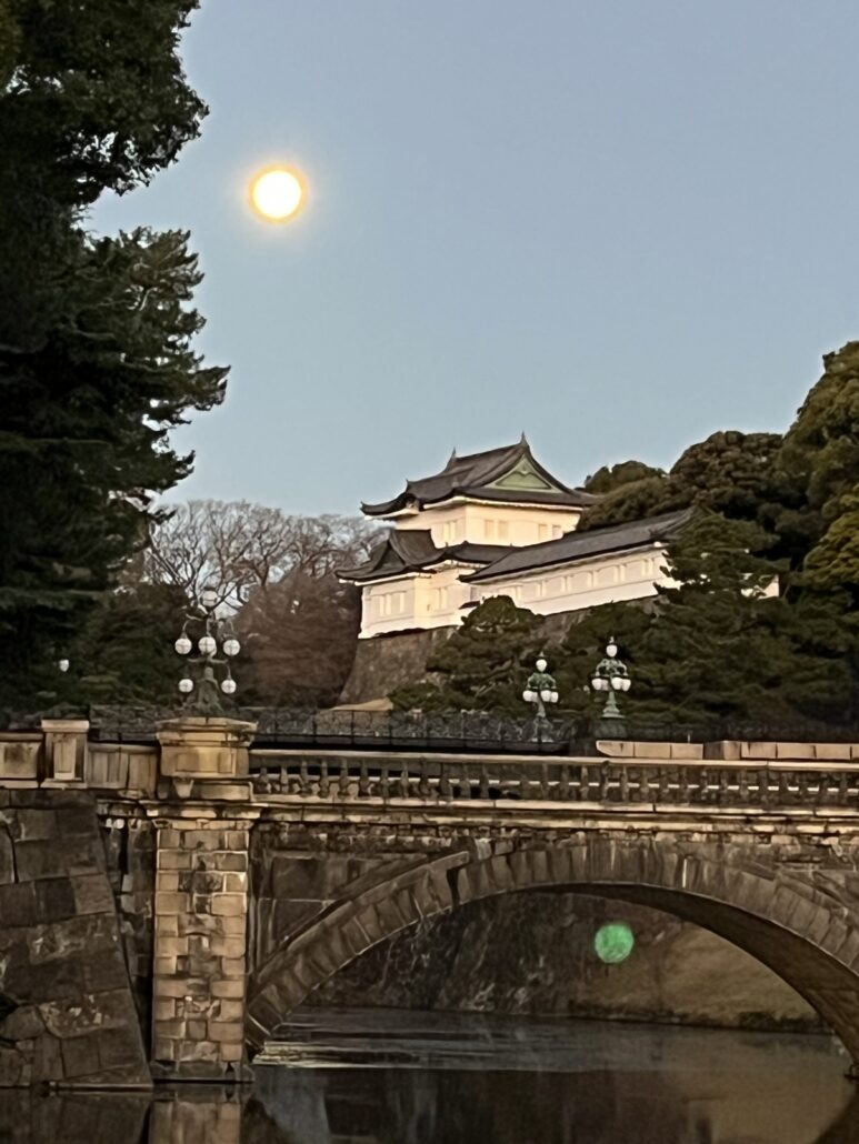 満月の翌日でしたので二重橋の上にかかるお月さまもGood.